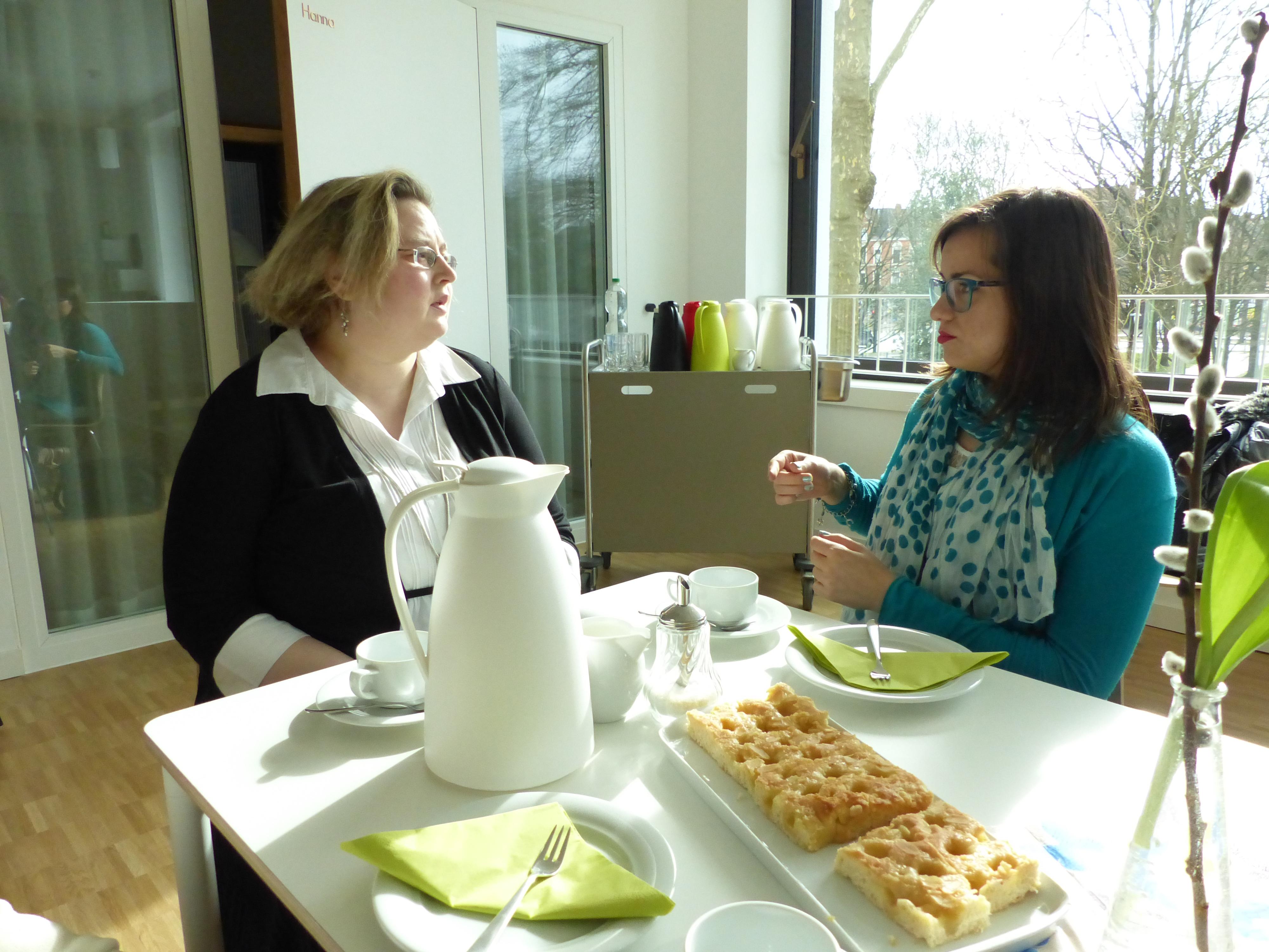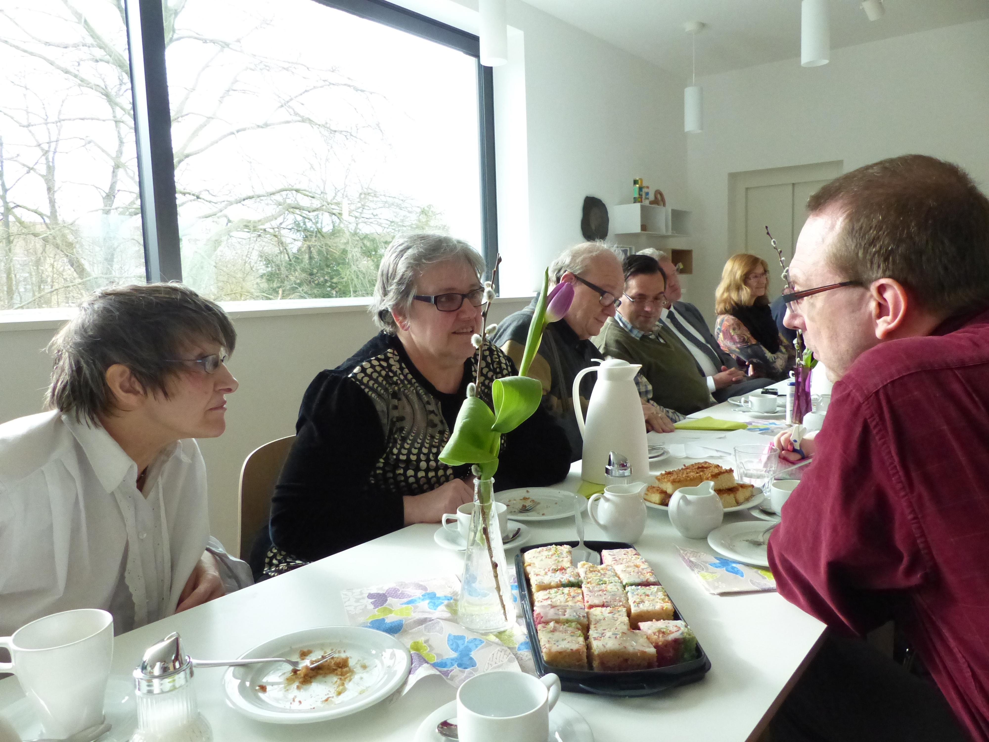 Nach der Begrüßung waren die Teilnehmer bald in intensive Gespräche vertieft. Die liebevoll vorbereitete Kaffeetafel trug dabei sehr zu einer entspannten Atmosphäre bei.